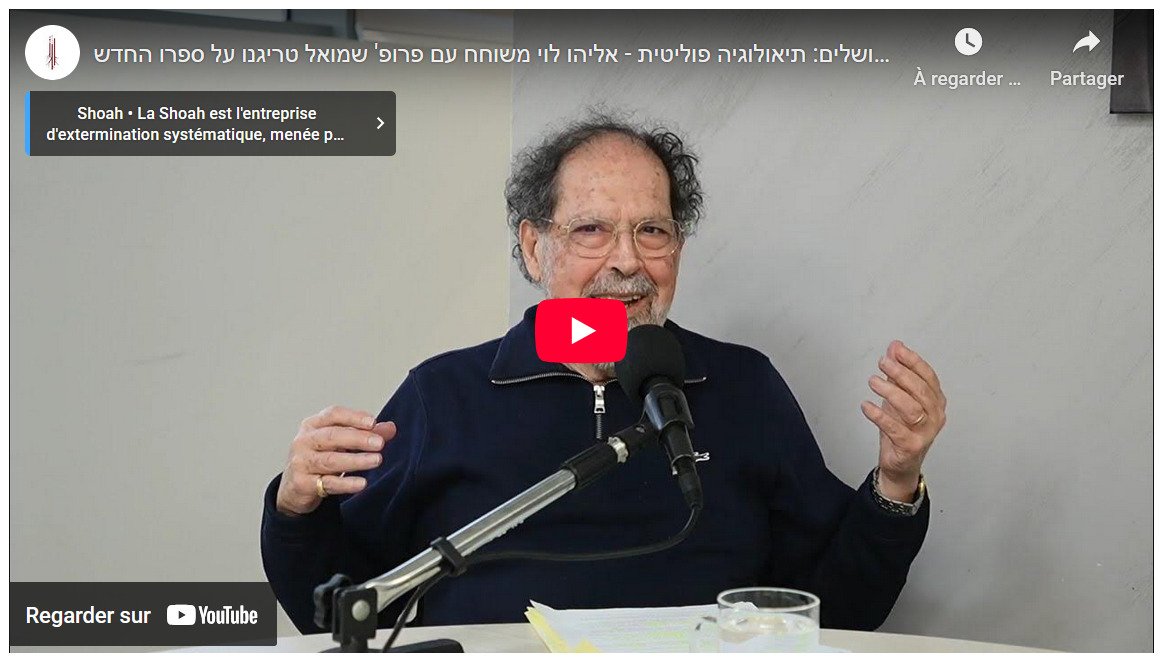 Le chemin de Jérusalem: une théologie politique Interview de Shmuel Trigano avec Elyahou Levy – en hébreu – Février 2026. A l’occasion de la sortie de son livre en hébreu Le chemin de Jérusalem, une théologie politique, Editions Blima.